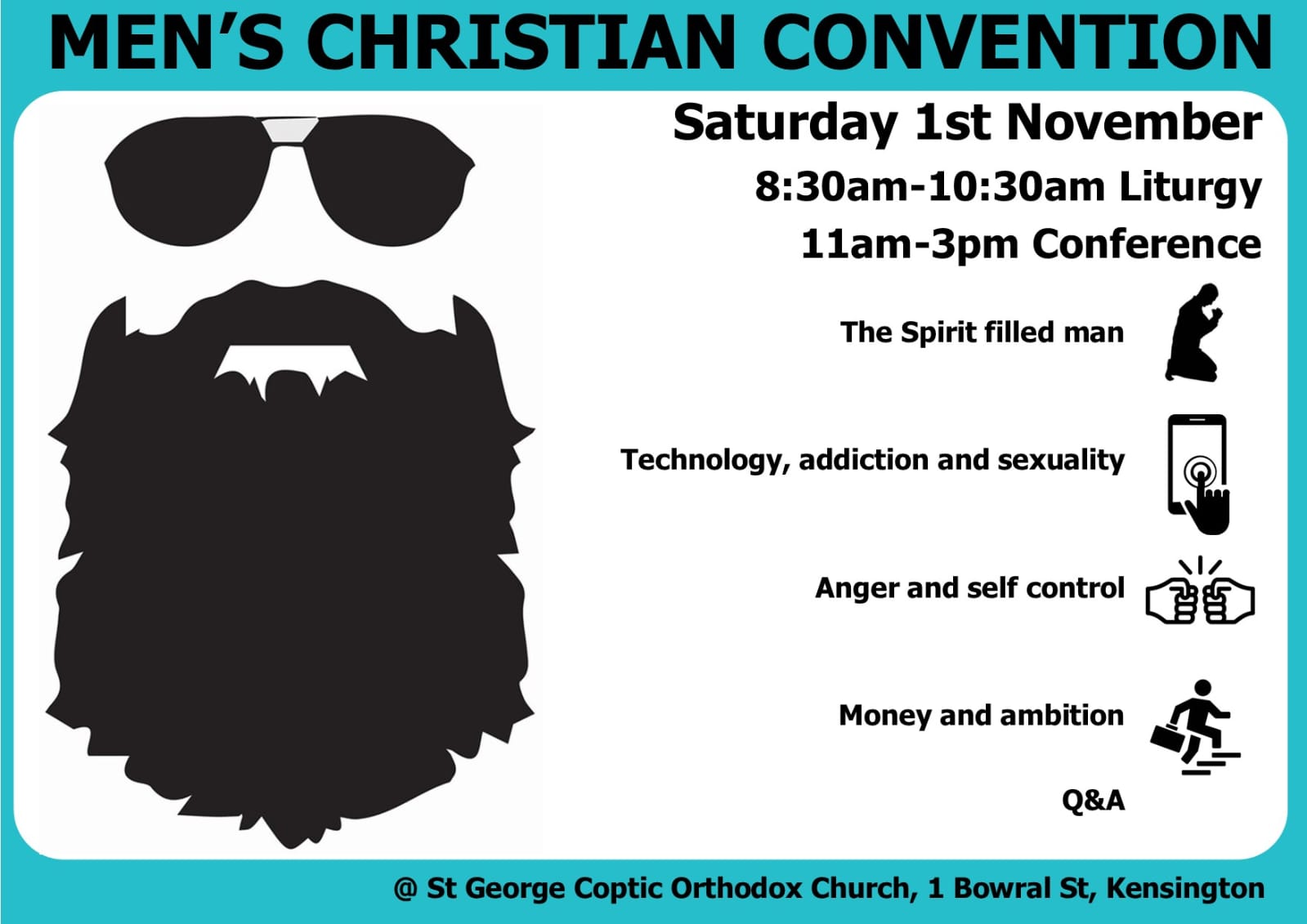 Come join us at the St George Coptic Orthodox Church for a day filled with relevant topics and spiritual growth. This event is designed for men above 18 years of age to come together and strengthen their faith in a supportive community.