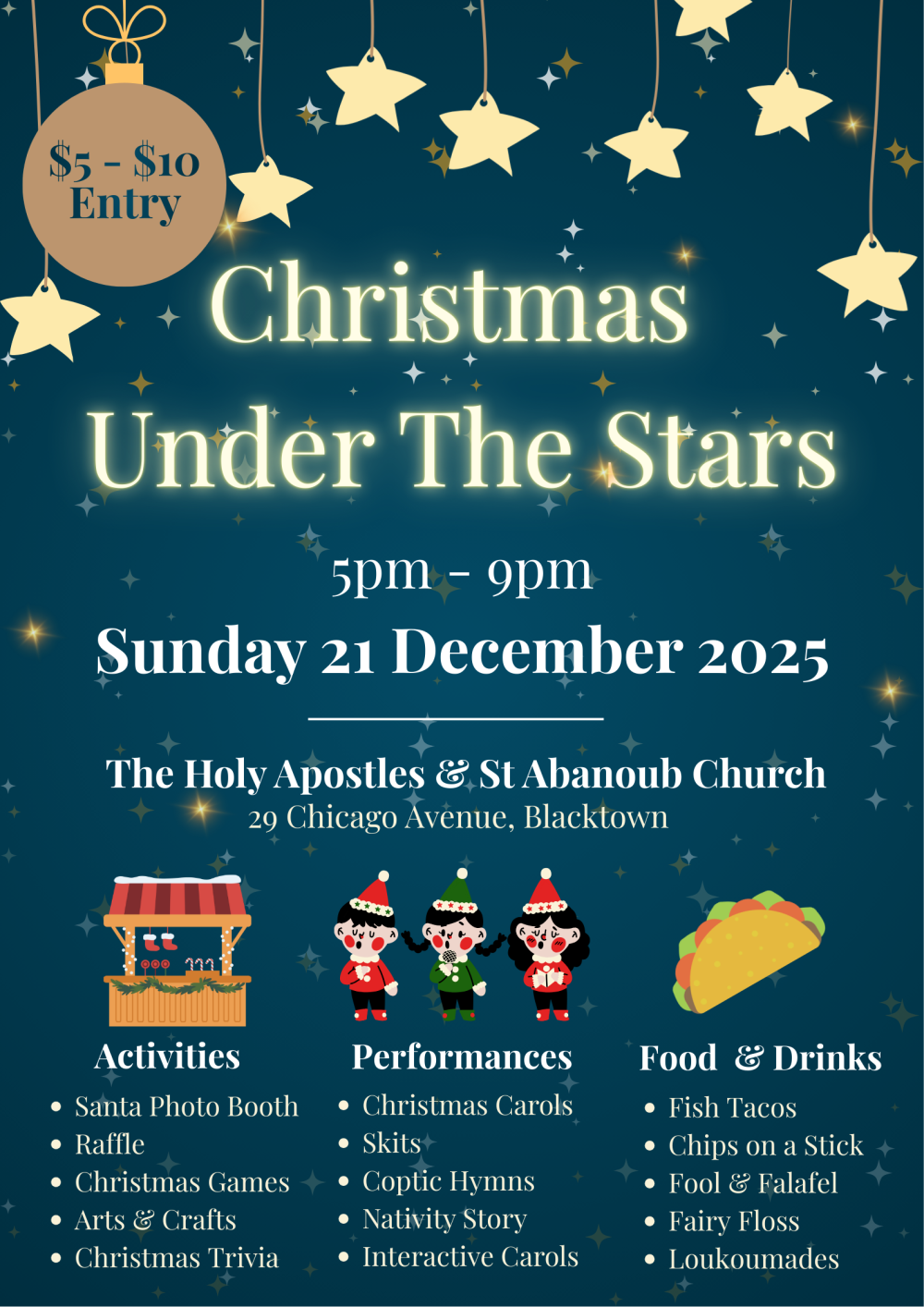 Join us for a joyful celebration of the Nativity and the birth of our Lord Jesus Christ at The Holy Apostles & St Abanoub Church in Blacktown.
