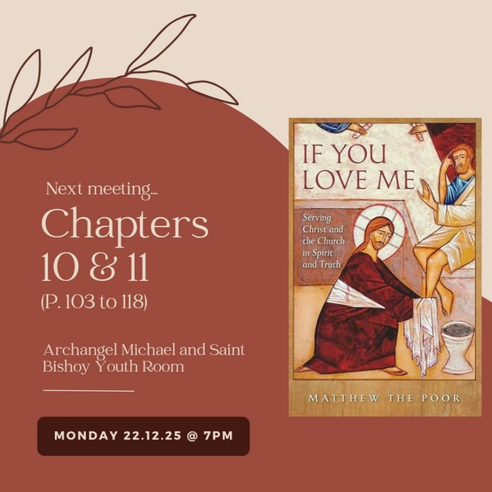Our next meeting will be Monday the 22nd of December 2025. We will be continuing our reading of If you love me by Fr Matthew the Poor.