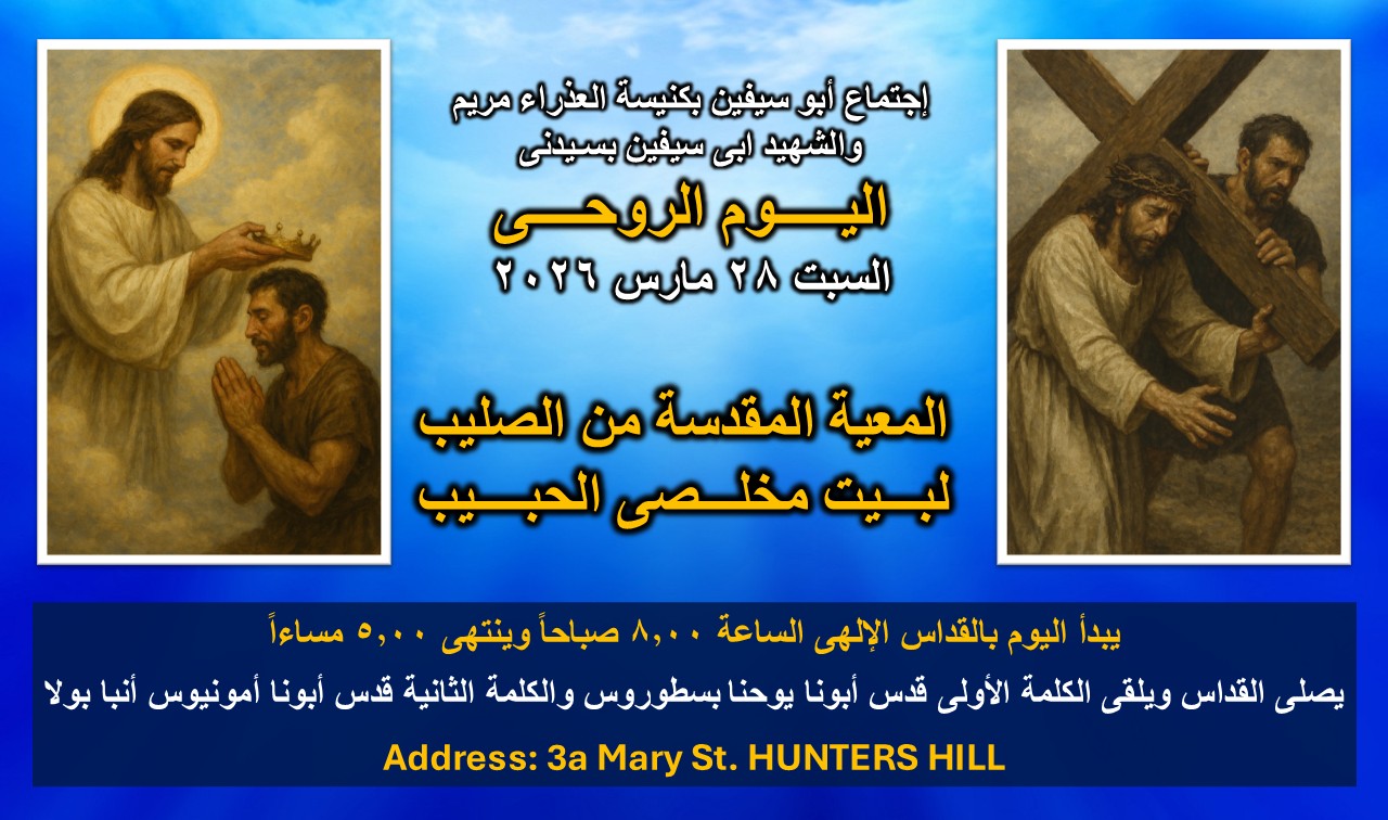 أحباؤنا يسعد اجتماع الجمعة دعوتكم لحضور اليوم الروحى يوم السبت ٢٨ مارس فى
