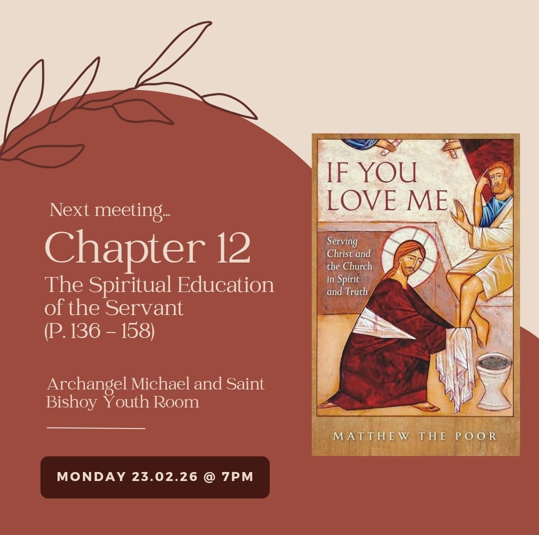 Our next meeting will be Monday the 23rd of February 2026. We will be concluding our reading of If you love me by Fr Matthew the Poor.