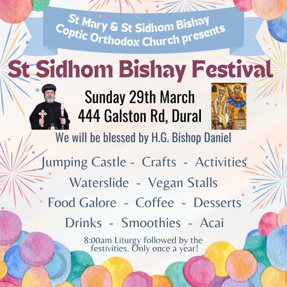 The festivities will be held at St Mary and St Sidhom Bishay Coptic Orthodox Church, Dural.
